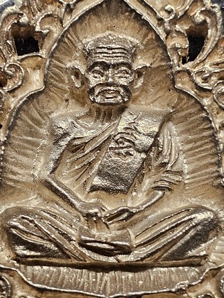 เหรียญหล่อฉลุ เนื้อเงิน หลวงปู่คร่ำ วัดวังหว้า ระยอง พ.ศ. 2537 ไม่มีกล่องครับ |