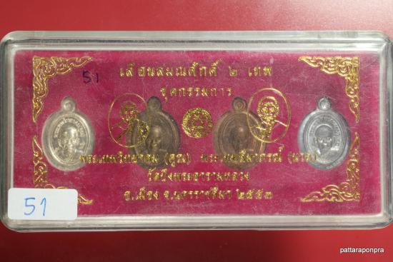 เหรียญหลวงพ่อคูณ หลวงพ่อนวล รุ่นเลื่อนสมณศักดิ์2เทพ ปี 2553 ชุดกรรมการ ประกอบด้วย 1.เนื้อเงิน 2.เนื้อนวะ 3.เนื้อทองแดง 4.เนื้อตะกั่ว หมายเลข 51 |