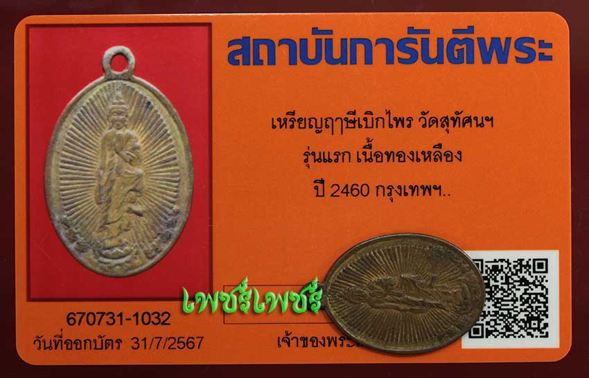 เหรียญ ฤาษีเบิกไพร วัดสุทัศนฯ รุ่นแรก เนื้อทองเหลือง ปี2460 จ.กรุงเทพฯ สภาพสวย เก่าเดิมๆตามอายุ พร้อมบัตรรับรองพระแท้จากการันตีพระสบายใจได้พระแท้แน่นอน ค่ะ