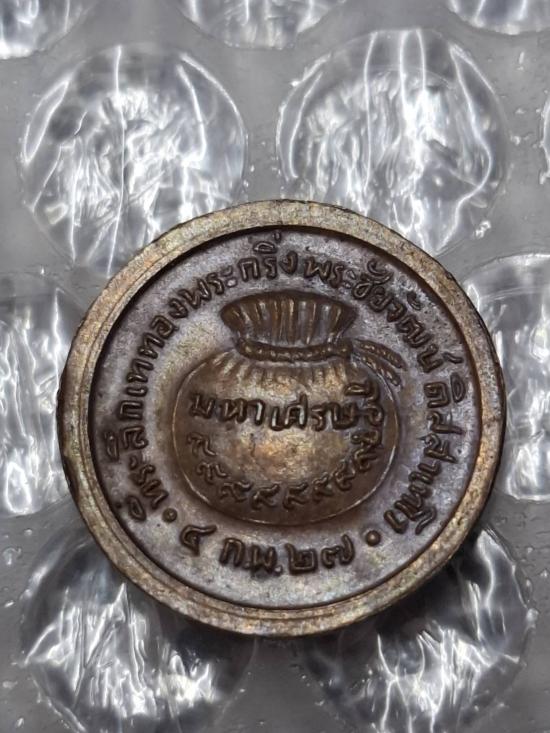 เหรียญกระดุม ขวัญถุงมหาเศรษฐี ปี 2527 หลวงพ่อพรหม วัดขนอนเหนือ จ.อยุธยา เนื้อทองแดง