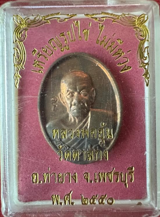 เหรียญรูปไข่ ไม่มีห่วง หลวงพ่ออุ้น วัดตาลกง ปี2550 พร้อมกล่อง