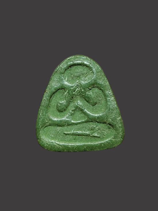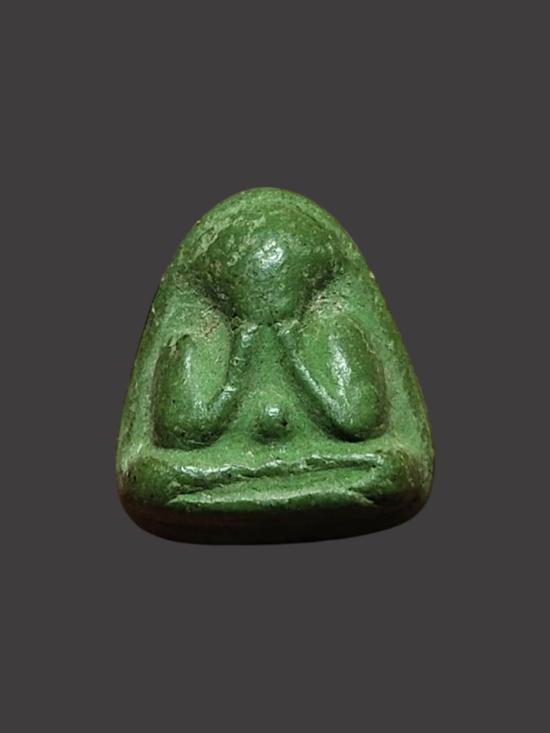 A1087.พระปิดตาหลังแบบ ท่านเจ้าคุณวิเชียร วัดเครือวัลย์ จ.ชลบุรี ปี 2519 พิมพ์เล็ก หลังแบบ เนื้อผงเขียว |