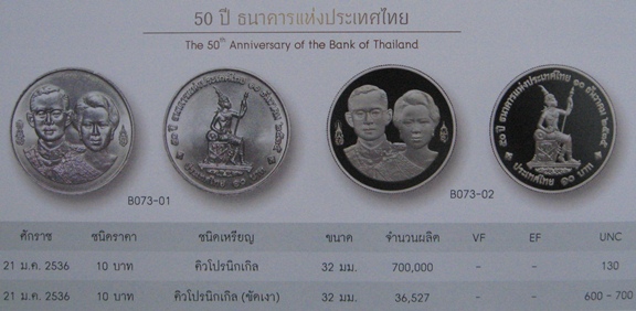 เหรียญ 10 บาทในหลวง พระราชินี เนื้อนิเกิลขัดเงา "ที่ระลึก 50 ปีธนาคารแห่งประเทศไทย" เหรียญในรัชกาลที่ 9 ปี 2535 |