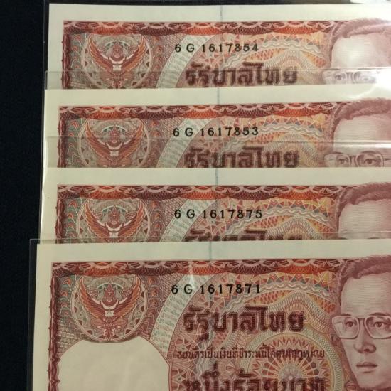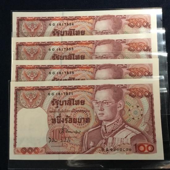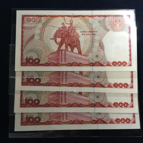 ธนบัตร 100 บาท ช้างแดง 4 ฉบับ **เลข 7 หลัก ** ไม่ผ่านการใช้ |