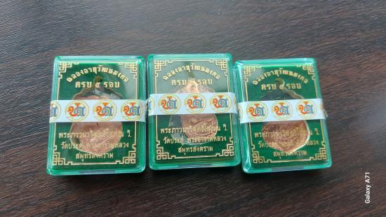 เหรียญฉลองอายุวัฒนมงคล ครบ 5 รอบ พระภาวนาวิสุทธิโสภณ(พระมหาสุรศักดิ์) วัดประดู่ พระอารามหลวง สมุทรสงคราม เนื้อทองแดง จำนวน 3 เหรียญ...520 |
