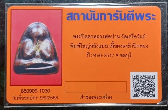 เคาะเดียว...ปิดตาหลวงพ่อปาน วัดเครือวัลย์ ชลบุรี พิมพ์ใหญ่เอหลังแบบ (นิยม) เนื้อผงลงรักแดงๆ ปิดทองเดิม ยุคต้น ปี 2490-2517 พระสวยครับ พร้อมบัตรรับรองจากทางเว็บ |