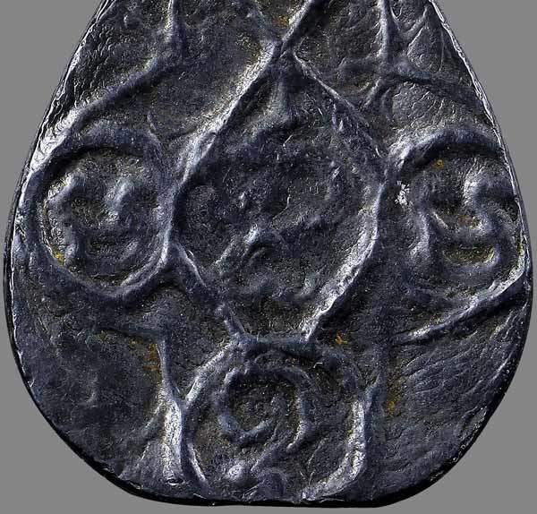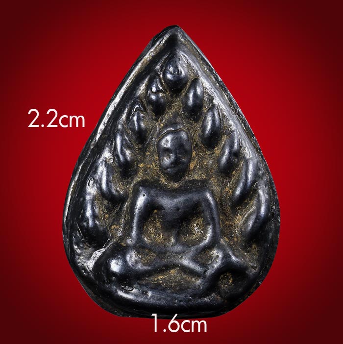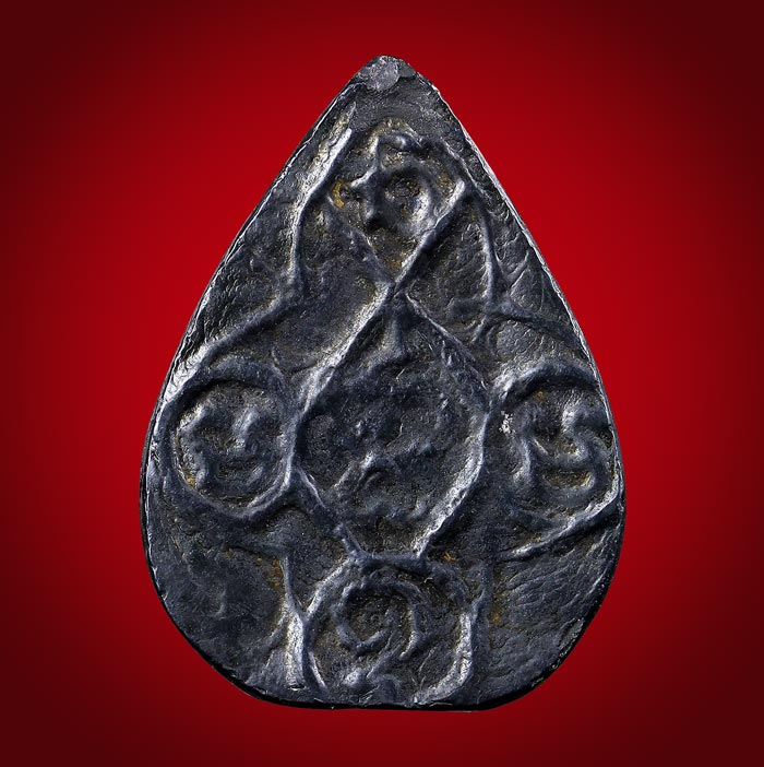 พระหล่อเนื้อเมฆพัตร พิมพ์หยดน้ำ หลังยันต์ (ไม่ทราบเกจิ) ขนาดพระ กว้าง 1.6 cm สูง 2.2 cm