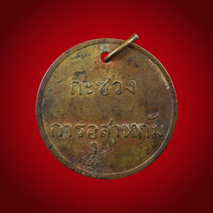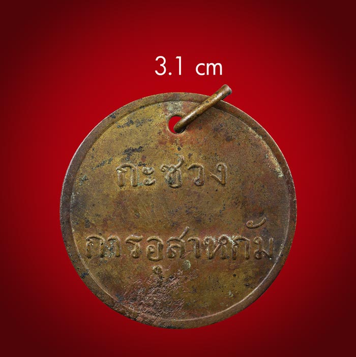 เหรียญที่ระลึก กะซวงการอุสาหกัม (ไม่ทราบผู้สร้าง) เนื้อทองผสม ห่วงเดิม ตอกหมายเลขกำกับ 4742 สภาพเก่ามีอายุ ขนาดเหรียญ 3.1 cm |