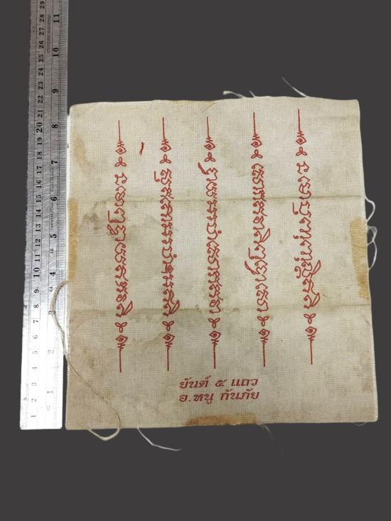 A1130.ผ้ายันต์ ยันต์ ๕ เเถว อาจารย์หนูกันภัย เก่าๆสภาพตามรูปครับ |