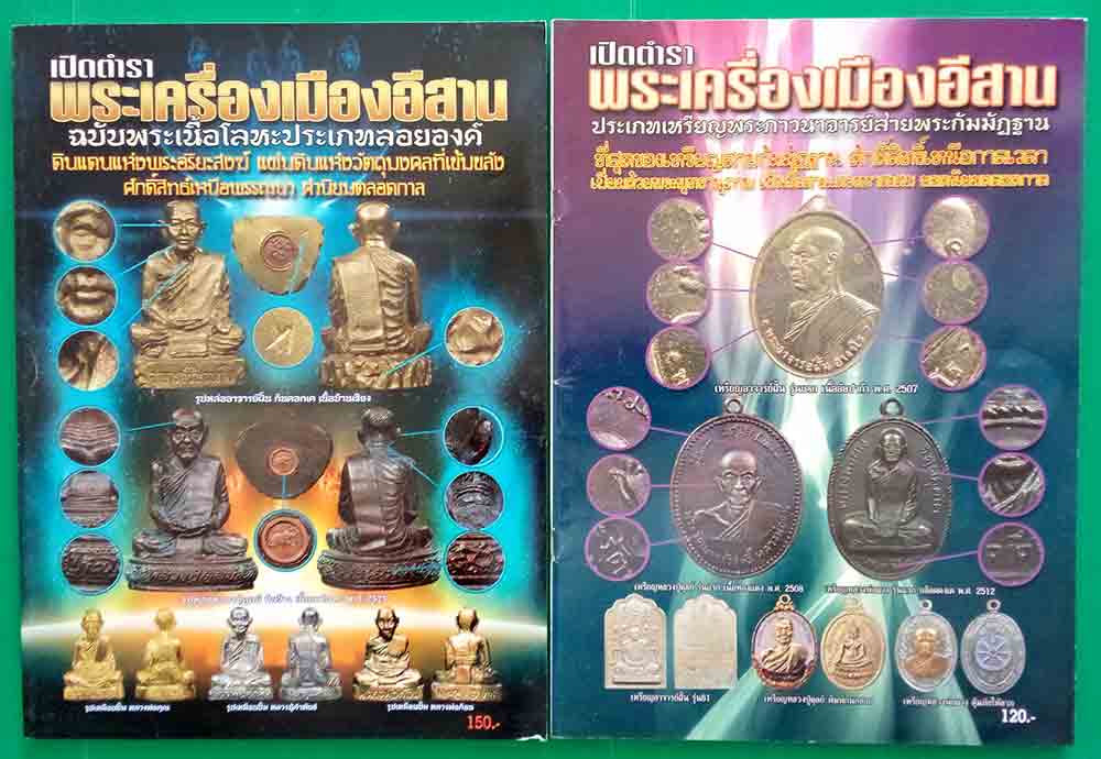หนังสือ เปิดตำราพระเครื่องเมืองอีสาน ประเภทเหรียญพระภาวนาจารย์สายพระกัมมัฏฐาน และฉบับเนื้อโลหะประเภทลอยองค์ รวม 2 เล่ม เคาะเดียวค่ะ