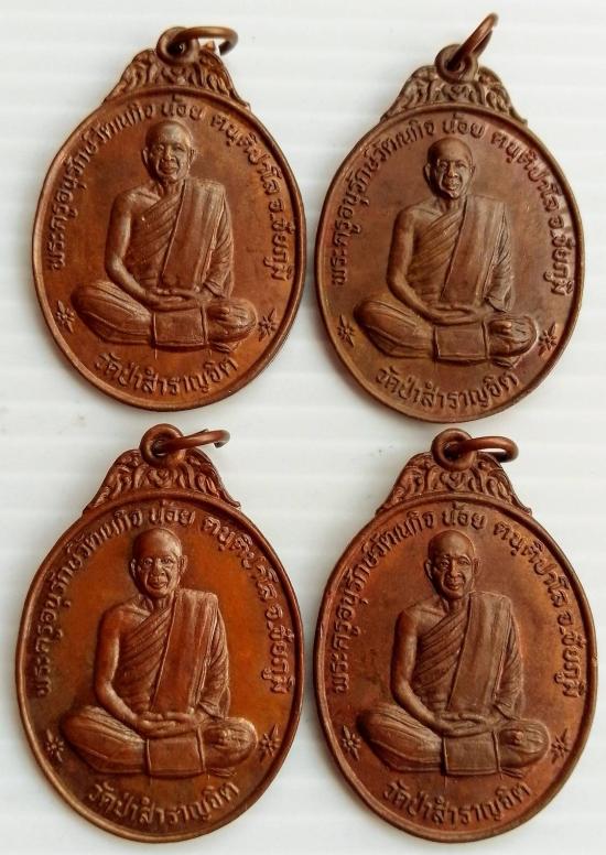 เหรียญรุ่นแรก พระครูอนุรักษ์วัฒนกิจ หลวงพ่อน้อย ตันติปาโล วัดป่าสำราญจิต จ.ชัยภูมิ ครูบาอาจารย์ของ พระอาจารย์นก วัดเขาบังเหย จำนวน 4 เหรียญ |