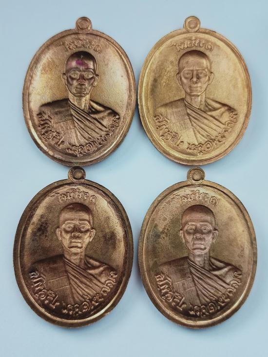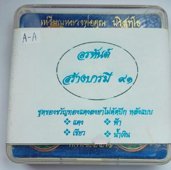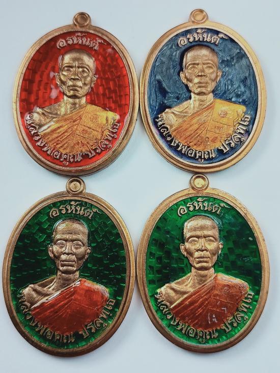 (ชุดของขวัญ4องค์) เหรียญ"อรหันต์สร้างบารมี91"หลวงพ่อคูณ วัดบ้านไร่ ชุดของขวัญทองแดงหลังแบบไม่ตัดปีก ลงยา4สี4องค์ พร้อมกล่องครับ (A-A)