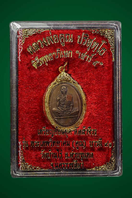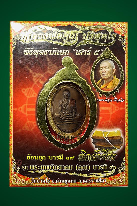 เหรียญพิเศษย้อนยุค ปี 19 รุ่นพระเทพวิทยาคม(คูณ) บารมี 91 เต็มองค์ ติดผ้าจีวร กล่องเดิม กรอบทองไมคอน |