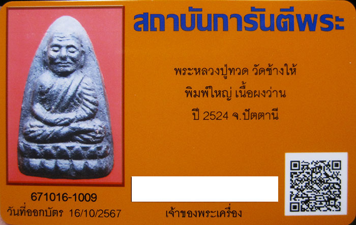 หลวงพ่อทวด เนื้อว่าน วัดช้างให้ ปี2524 พิมพ์ใหญ่(หน้าใหญ่จัมโบ้) สภาพสวย หน้าจัมโบ้ตัวจริง พร้อมบัตรรับรอง |
