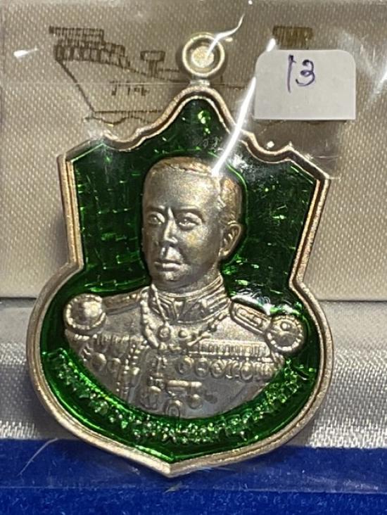 กรมหลวงชุมพรฯ รุ่นที่ระลึกสร้างพิพิธภัณฑ์เรือหลวงลันตา เหรียญเนื้อเงินลงยาสีเขียว หมายเลข 13 มาพร้อมกลองเดิมๆครับ