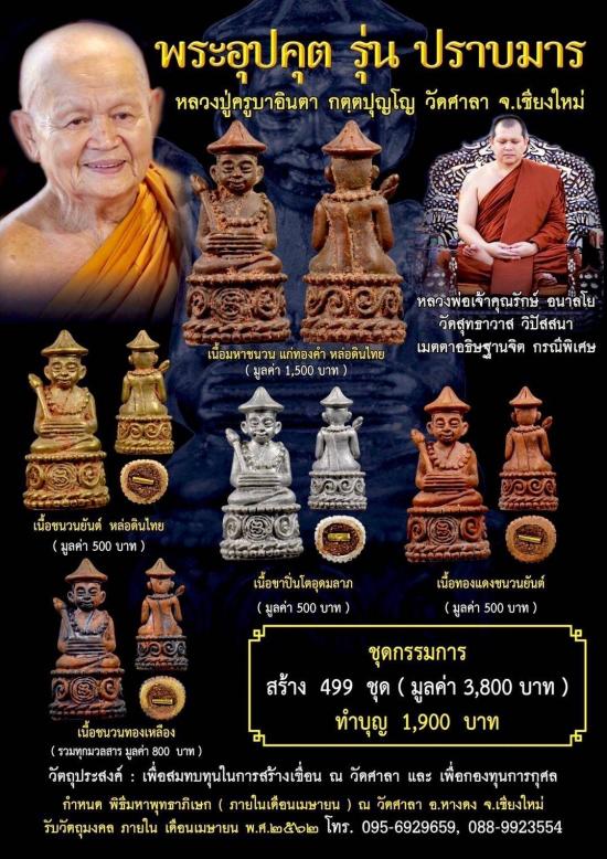 พระอุปคุต รุ่น ปราบมาร หลวงปู่ครูบาอินตา กตฺตปุญโญ วัดศาลา จ.เชียงใหม่ เนื้อนวะฝังตะกรุตทองคำ |