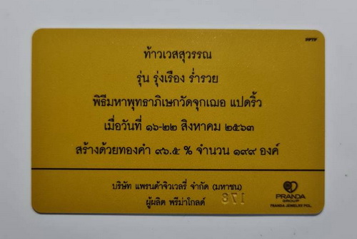 " รุ่งเรือง ร่ำรวย " หลวงพ่อช้าง วัดจุกเฌอ แปดริ้ว รูปหล่อลอยองค์เนื้อทองคำพิมพ์เล็ก หมายเลข 178 กล่องเดิม ใบเซอร์ สวยงามน่าสะสมครับ