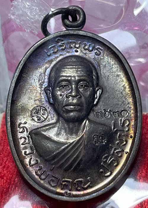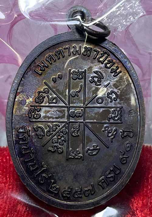 หลวงพ่อคูณ เหรียญเจริญพรบน 2 พรหมเทพ เนื้อทองแดงรมดำ เลข No.2620 จมูกโด่ง ผิวรุ้ง |