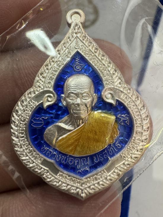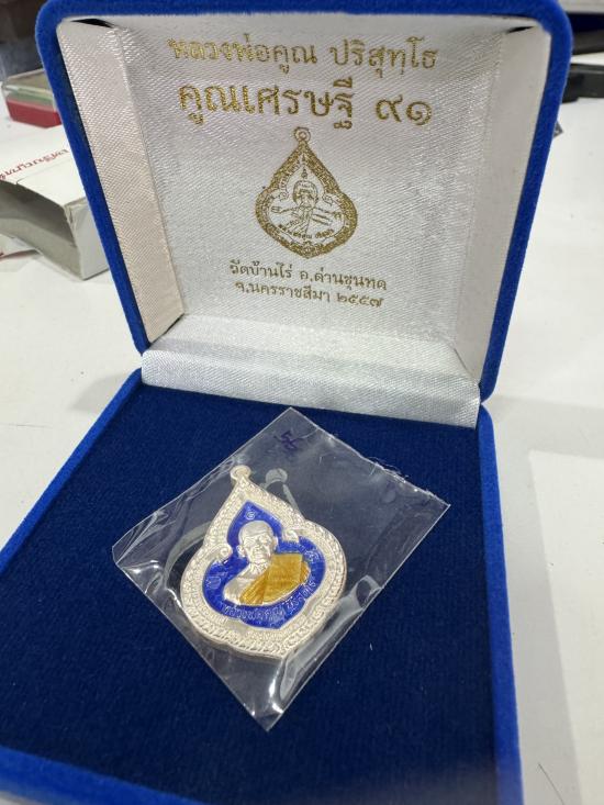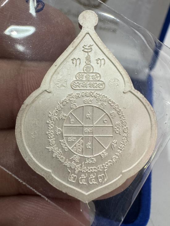 เหรียญหยดน้ำ รุ่นคูณเศรษฐี91 ปี2557 เนื้อเงิน ลงยาสีน้ำเงิน no.56 มีกล่อง