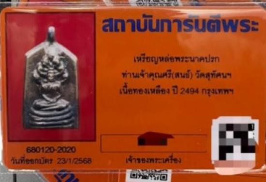 พระประจำวันเสาร์ ปางนาคปรก วัดสุทัศน์ ปี2494 หายากครับ พร้อมบัตรรับร |