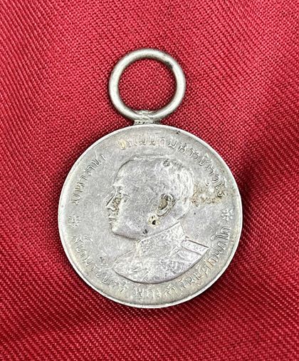 เหรียญ ร.6 บรมราชาภิเษก ร.ศ.130 เนื้อเงิน สภาพสวย หูที่ใช้ร้อยแพรแถบยังอยู่เลยค่ะ |