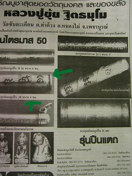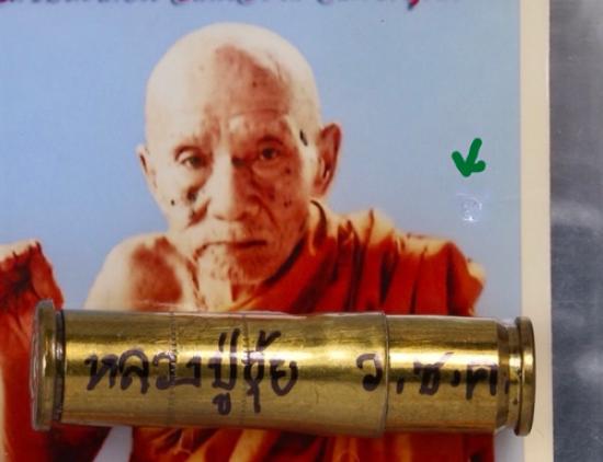 ตะกรุด ปลอกลูกปืน .38 ขนาด 4 ซม. หลวงปู่ขุ้ย วัดซับตะเคียน ปี50 + ภาพถ่าย + ซองเดิม E-3 |