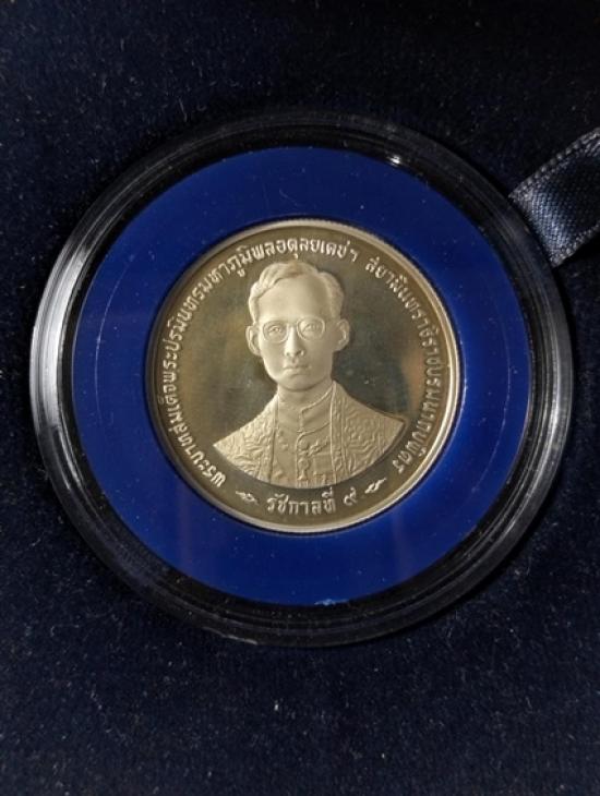 เหรียญในหลวง ร.9 กาญจนาภิเษก 150 บาท เนื้อเงินขัดเงา 1 เหรียญพร้อมกล่อง (ฝากล่องด้านบนมีชำรุด)