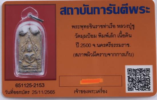 พระพุทธชินราชท่าเรือ หลวงปู่ชู วัดมุมป้อม นครศรีธรรมราช ปี 2500 พร้อมบัตรครับ |