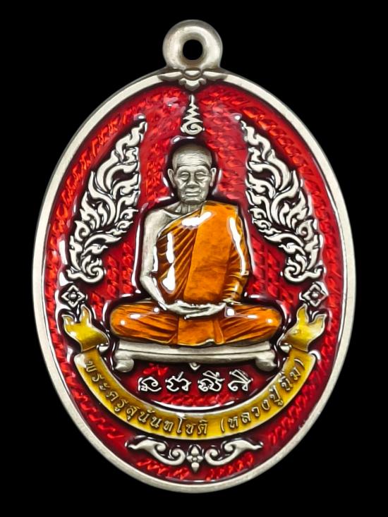 เหรียญหลวงปู่นิ่ม วัดพุทธมงคล สุพรรณบุรี เนื้ออัลปาก้าซาตินลงยาสวยมาก เลข ๙๐ วัดใจ 100 แดงครับ |