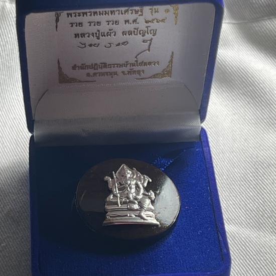 2 หน้า พระพรหมกะลาแกะ มหาเศรษฐี หลวงปู่แผ้ว (เนื้อเงินกล่องกำมะหยี่ ) สำนักปฏิบัตืธรรมบ้านในใสหลวง ปี 2564 รุ่น 1 จ.พัทลุง |