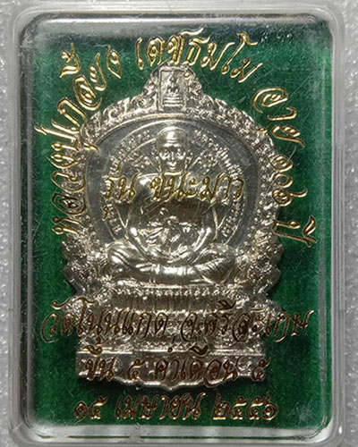 วัดใจ...เหรียญนั่งพานชนะมาร หลังหนุมานเชิญธงชนะศึก หลวงปู่เกลี้ยง วัดโนนแกด จ.ศรีสะเกษ เนื้ออัลปาก้า หมายเลข ๕๐๕ กล่องเดิม |
