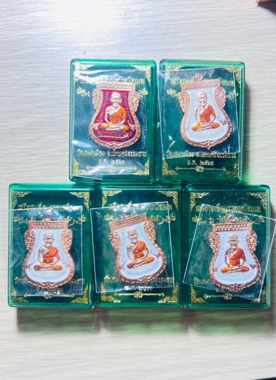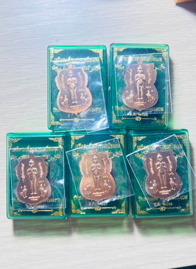 วัดใจ เหรียญเลื่อนรวยเหนือเมฆ รุ่นไอ้ไข่ กายสิทธิ์ วัดเสมาเมือง จ.นครศรีธรรมราช เนื้อทองแดงลงยา 5 เหรียญ |