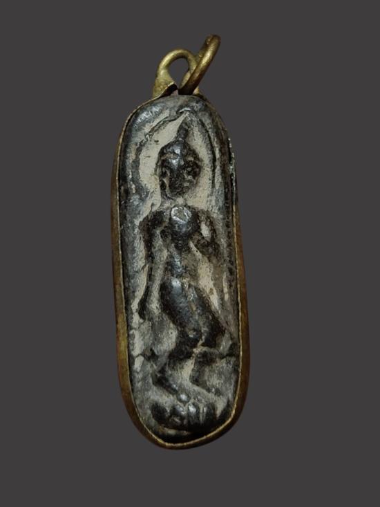 A1162.พระเนื้อดิน ปางลีลา เลี่ยมเดิม ไม่ทราบที่ เคาะเดียวเเดง |