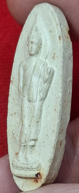 พระ25ศตวรรษ ปี2500 เป็นพระเนื้อดิน พระองค์นี้สภาพสวย กาตาพระพุทธติดชัดเจน แต่มีบริเวณช่วงมือและแขนของท่านที่พิมพ์ไม่ติดยะครับ แต่ส่วนบริเวณอื่นๆสวยมากๆเลยนะครับ |