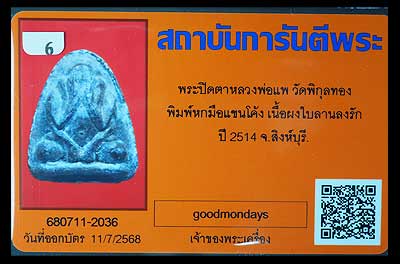 พระปิดตา เนื้อผงใบลาน ปี2514 หลวงพ่อแพ วัดพิกุลทอง สิงห์บุรี |