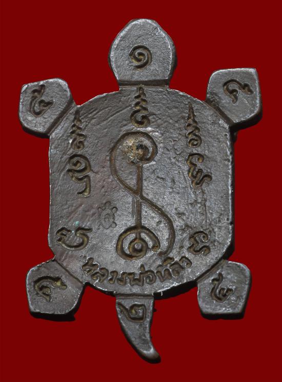 เต่าหล่อหลวงปู่หลิว รุ่นรวยทรัพย์ เนื้อนวะ หลังติดทรายเสก ปี2538 |
