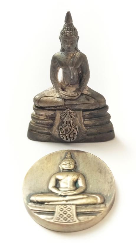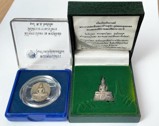 พระกริ่งหลวงพ่อโสธร ภปร. ปี 40 และเหรียญหลวงพ่อโสธร เนื้อเงิน รุ่น สร้างอุโบสถหลังใหม่ ปี 42 |