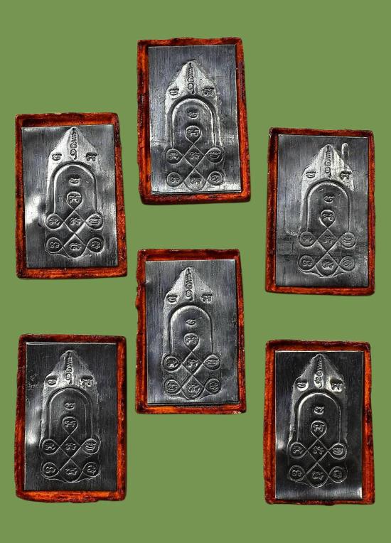 ชุด 6 องค์...ปู่อุ้มดวงหลังแผ่นยันต์ (หนุนชะตา พาเจริญ) ปี 2561 หลวงพ่อสมนึก วัดหนองกระสังข์ จ.ลพบุรี พร้อมซองใบคาถาเดิมจากวัด สภาพพระตามรูปทุกประการ (ขนาดประมาณ 3.2 x 2.1 ซม.)