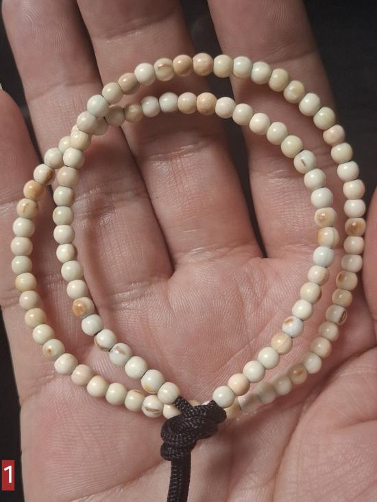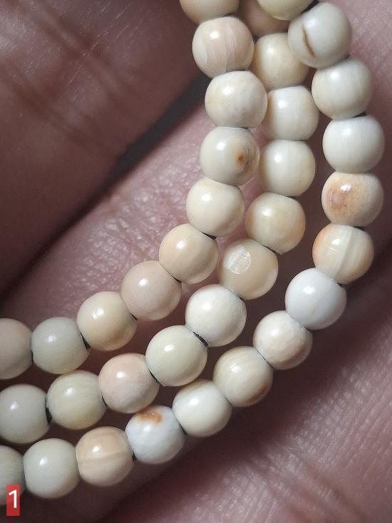 เคาะเดียว เม็ดงา4mm. 100เม็ด งานติดเปลือก ยาว14นิ้วครับ |