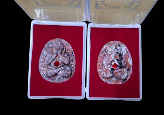มาคู่ พระปิดตา หลวงพ่อคูณ วัดบ้านไร่ รุ่นคูณเงิน คูณทอง ปี56 (เนื้อก้นครก ฝังตะกรุดเงินคู่ อุดพลอย หลังแมงมุมดักทรัพย์ ติดจีวร) |