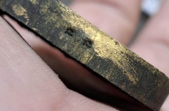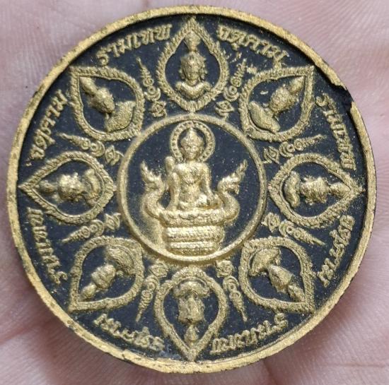 จตุคามรามเทพ รุ่น บูรณะหลักเมืองนครศรีฯ เนื้อดำปัดทอง ปี2547 จ.นครศรีธรรมราช (มีบิ่นตรงขอบ) |