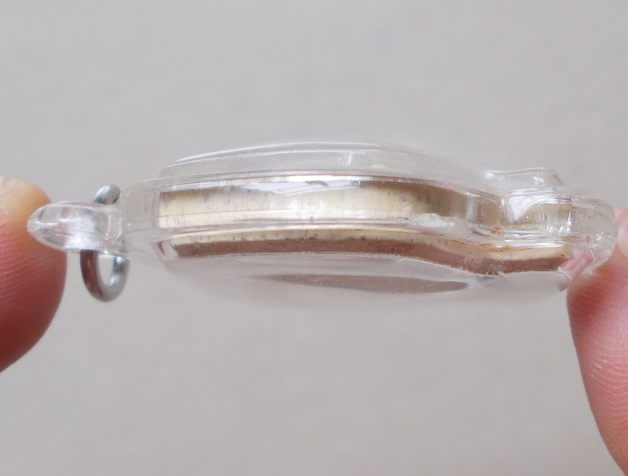 ขนาด 2.5 ซ.ม. X 3 ซ.ม. สภาพสวยสมบูรณ์ จารยันต์ด้วยดินสอ เลี่ยมกัน้ำพร้อมแขวน !!