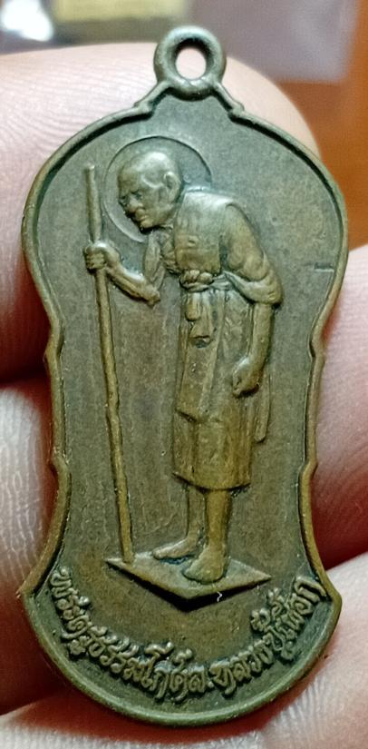 เหรียญยืนถือไม้เท้า หลวงปู่เผือก วัดสาลีโข จ.นนทบุรี รุ่นฉลองอายุ 40 ปี พ.ศ.2522 เนื้อทองแดง |
