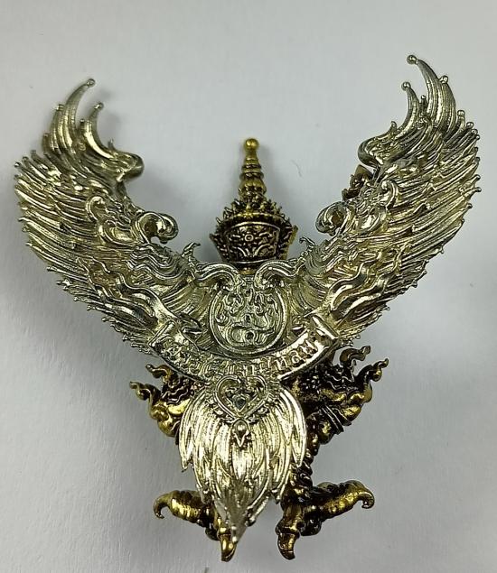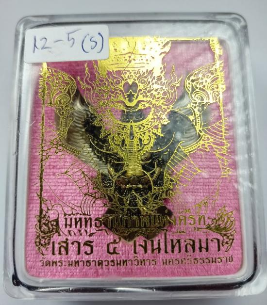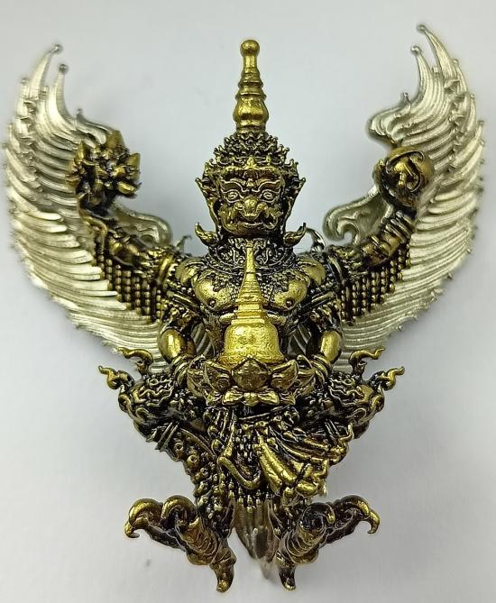 พญาครุฑเสาร์ ๕ เงินไหลมา วัดพระมหาธาตุ จ.นครศรีธรรมราช "พิมพ์ใหญ่ ขนาด 4.3ซม." เนื้อมหาชนวนรมดำ ปีกทองขาว พระธาตุทองลำอู่ เบอร์ 12 พร้อมกล่องครับ (S)