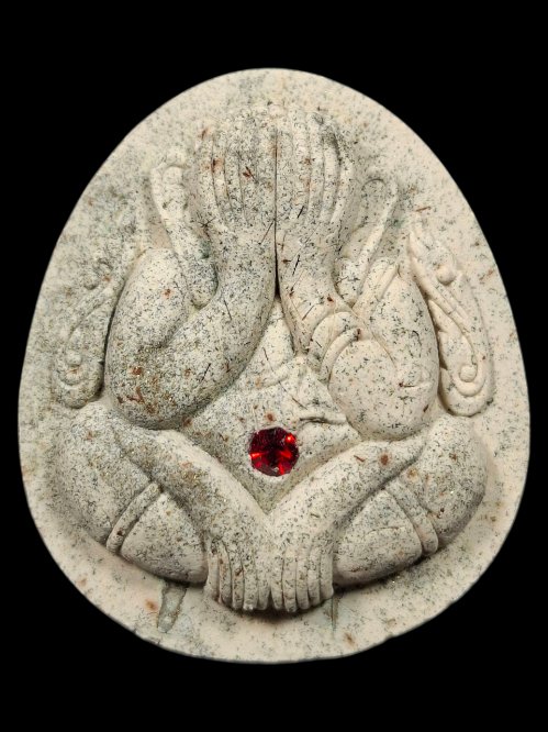พระปิดตาปิดทวาร หลังหุ่นพยนต์ พิมพ์ใหญ่ เนื้อว่านขาว ฝังพลอย ฝังตะกรุดเงิน 2 ดอก จีวร เกศา รุ่น เสาร์ 5 มหาเศรษฐี หลวงพ่อเมีย น วัดบ้านจะเนียง จ.บุรีรัมย์ ปี 2557 |