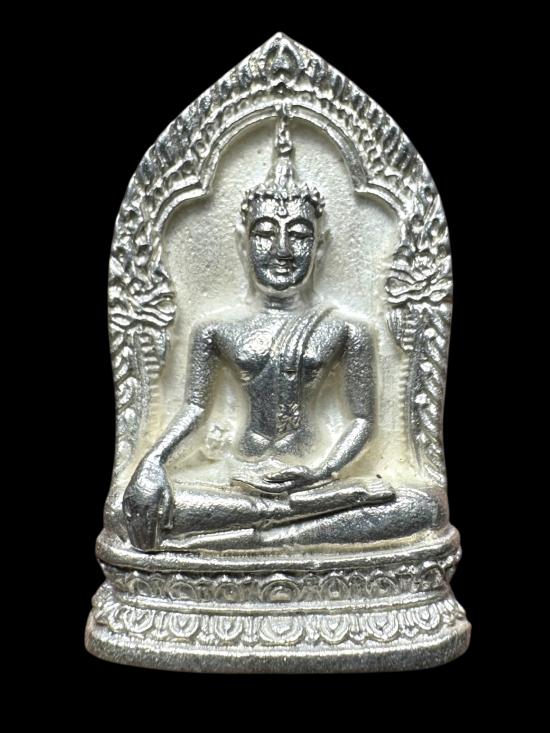 พระพุทธชินราชหล่อโบราณเหวี่ยงมือ รุ่นมงคลโภคทรัพย์ เนื้อเงิน ปี2540สวยมาก