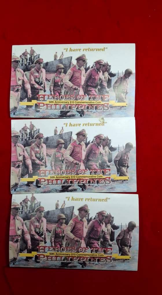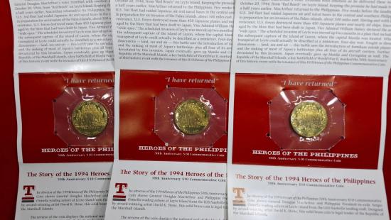 เหรียญกษาปณ์ที่ระลึก 10 ดอลลาร์ "วีรบุรุษแห่งฟิลิปปินส์" (Heroes of the Philippines) ซึ่งเป็นเหรียญที่ระลึกครบรอบ 50 ปี (1944-1994) ของเหตุการณ์สำคัญในฟิลิปปินส์ ทั้งหมด3เหรียญ |