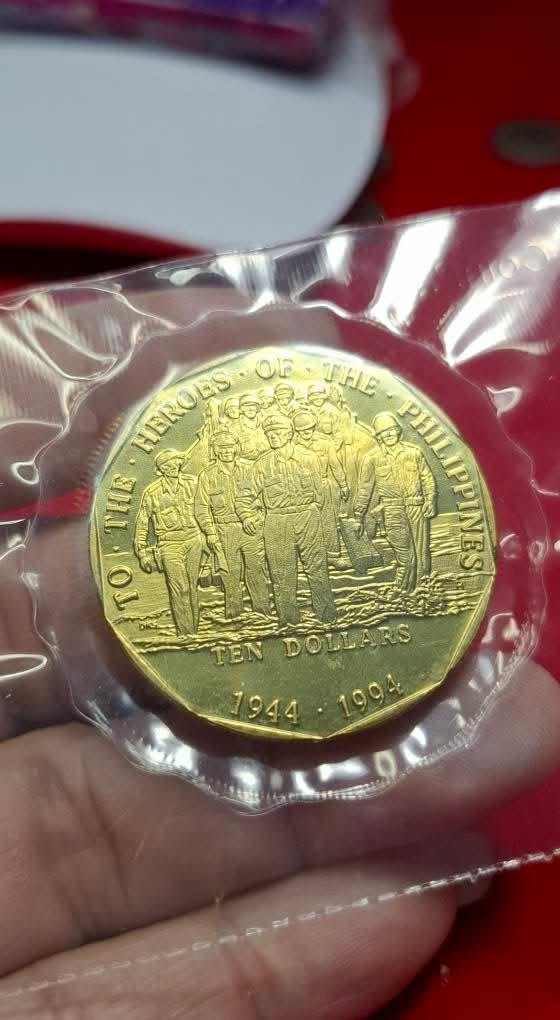 เหรียญกษาปณ์ที่ระลึก 10 ดอลลาร์ "วีรบุรุษแห่งฟิลิปปินส์" (Heroes of the Philippines) ซึ่งเป็นเหรียญที่ระลึกครบรอบ 50 ปี (1944-1994) ของเหตุการณ์สำคัญในฟิลิปปินส์ |