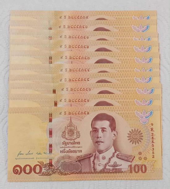 ธนบัตร 100 บาท ในวาระพระราชพิธีบรมราชาภิเษก พุทธศักราช 2562 รัชกาลที่10 ไม่ผ่านการใช้งาน จำนวน 10 ฉบับ ครับ
