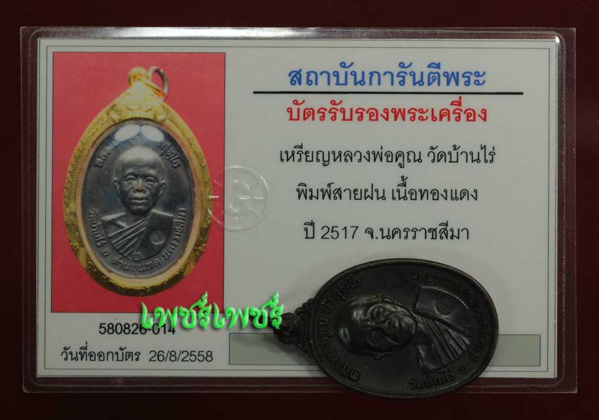 เหรียญ หลวงพ่อคูณ วัดบ้านไร่ พิมพ์สายฝน เนื้อทองแดง ปี2517 จ.นครราชสีมาสภาพสวยๆเดิมๆ พร้อมบัตรรับรองพระแท้จากการันตีพระสบายใจได้พระแท้แน่นอน ค่ะ |